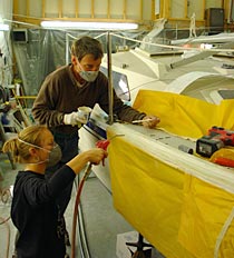 The modern fiberglass hull is lightweight and strong -- but accidents do happen. That broken mast step, the hole in your hull, the stress cracks, chips, and scratches from wear and tear -- we can repair all of them to look like new.