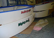 We specialize in one-design small boats: Opti, 420, Laser, Sunfish, and the like. Our goal is to make your boat look brand-new again, whether the damage is a broken corner, Gel-kote dings, or a demolished mast step. If you are damaged during a regatta, we'll treat it like an emergency and do our best to get you back out on the water quickly.